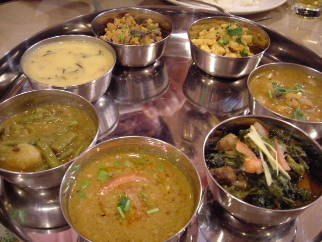 リンちゃんのカレーを中心に。右はinaさんのポリヤル、左下はイディヤッパン。